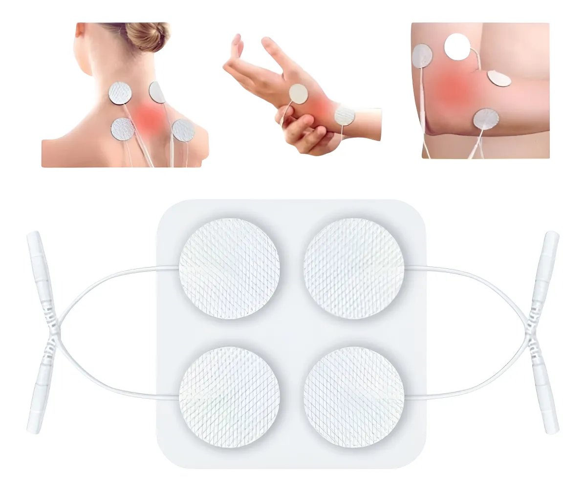 Electrodos de tela redondos, (Faciales)TENS/EMS * Paquete de 4 Unidades – Almohadillas redondas de tela con gel autoadhesiva – Con conector de aguja